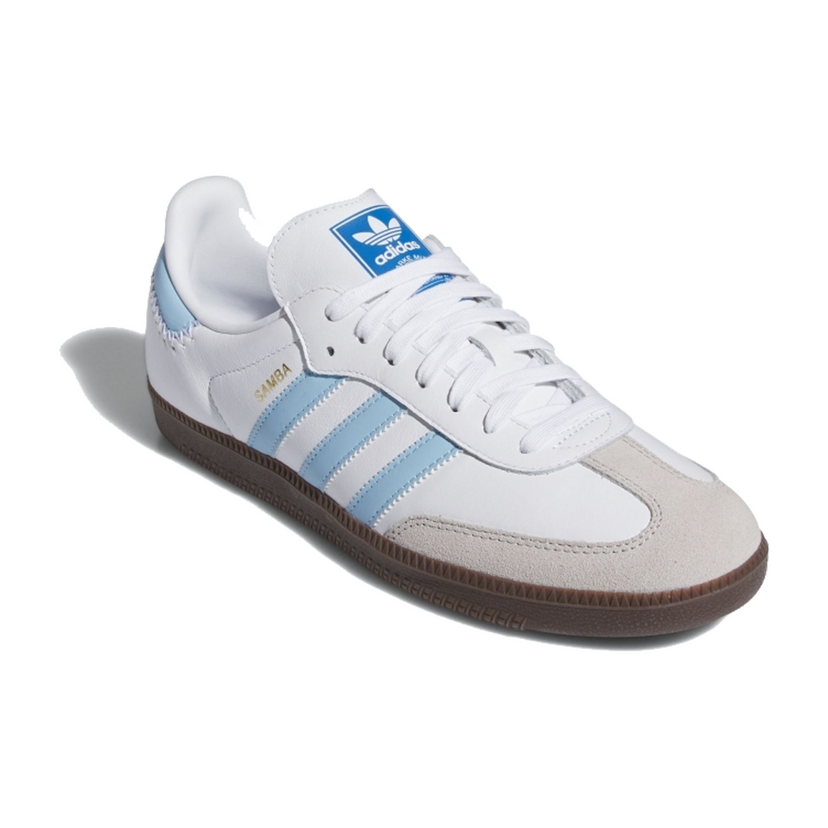 SNEAKERSThe Adidas Samba OG Cloud White Light Blue refreshes the classic silhouette with a clean white base and subtle light blue accents. Built with premium leather and a signature gum sole, it delivers timeless style and everyday comfort. Key Features: Premium leather upper for durability and a smooth finish Light blue accents for a fresh, modern touch Cushioned insole for all-day comfort Durable gum rubber outsole for reliable traction A clean, versatile sneaker with a stylish twist. Get the Adidas Samba OG Cloud White Light Blue today.